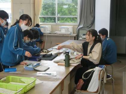 5/27 2-2 出来上がりは? 4 公開日 2024/05/27 更新日 2024/05/27 各学年から 2年2組の家庭科の授業の様子です。 オリジナルエコバッグづくりもいよいよ終盤。仲間と作品の出来について確認し合っていました。