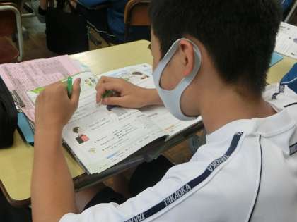 「身近な人やものを英語で紹介しよう」をテーマに学習が進められていました。