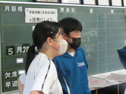 朝の活動時に行われた「たかまるタイム(第8回)」・3年生の様子です。
