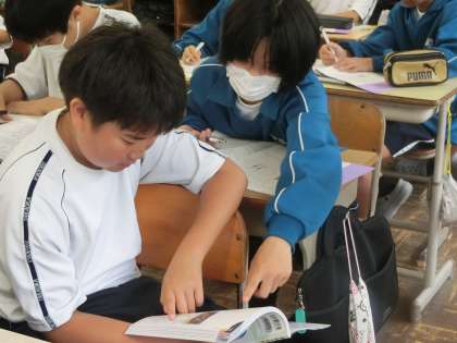 単元のまとめとして、仲間と学習した内容を確認し合っていました。