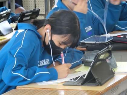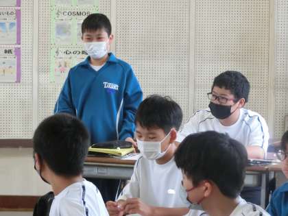 教育実習生による研究授業で、「友達の意見を聞いて、より曲の魅力を感じよう」をテーマに、鑑賞の学習に取り組んでいました。