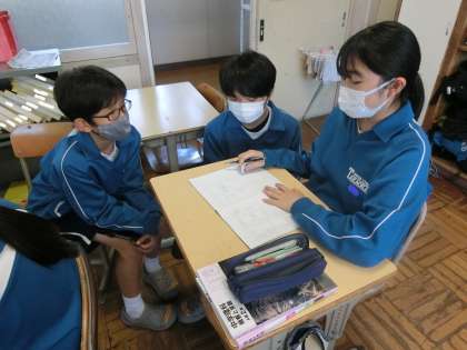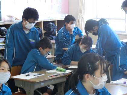 定期テストの出題範囲になっている1年生で学習した「地震」の内容をしっかり思い出そうと、仲間や教科担任にどんどん質問していました。