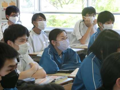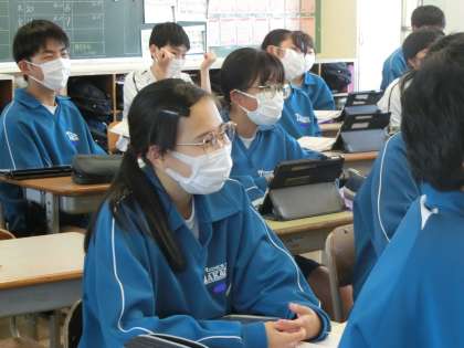 5/29 3-2 冷戦の終結を分かりやすく 3 公開日 2024/05/29 更新日 2024/05/29 各学年から 3年2組の社会・歴史分野の授業の様子です。 「冷戦の終結へ向けた世界の動きを知ろう」という難しいテーマに迫るため、教科担任のイメージのわきやすいたとえに、生徒たちも自然と笑顔がこぼれていました。