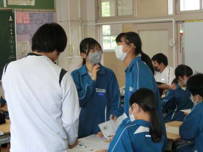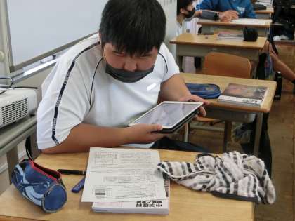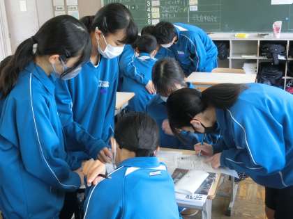 定期テストの出題範囲になっている1年生で学習した「地震」の内容をしっかり思い出そうと、仲間や教科担任にどんどん質問していました。