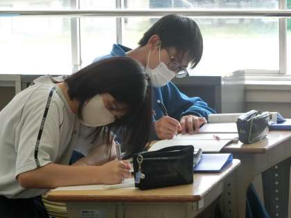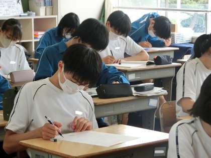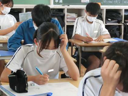定期テストの出題範囲の内容について、プリントを使って総復習に取り組んでいました。