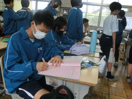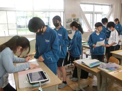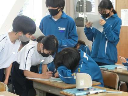 定期テスト直前の復習の中で、教科担任が一人一人の取組を丁寧に確認していました。