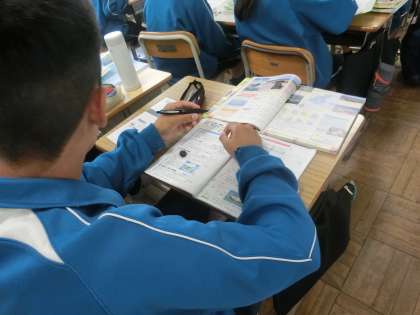 定期テストを目前に控え、最後の頑張りです。理解が不十分なところは、どんどん教科担任に質問していました。