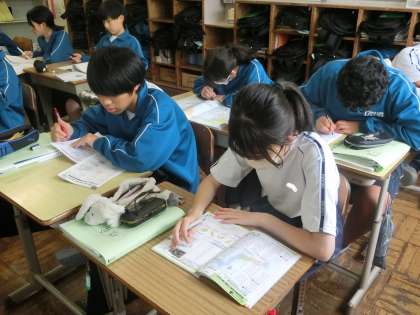 定期テストを目前に控え、最後の頑張りです。理解が不十分なところは、どんどん教科担任に質問していました。