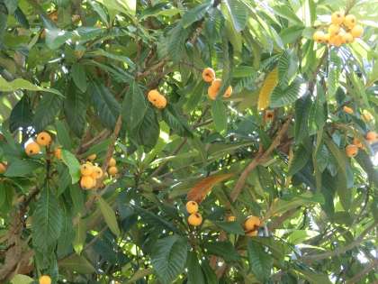 校内のビワの木には、立派に成長した実がたくさんついています。3棟南側にはとても大きな木が1本、プールの北側には少し小ぶりの木が2本植わっています。高岡の地の恩恵として大切に収穫し、特別支援学級の生徒たちによってジュースやジャムなどにしていく予定です。