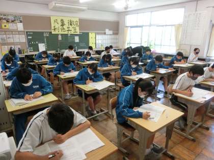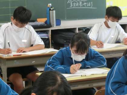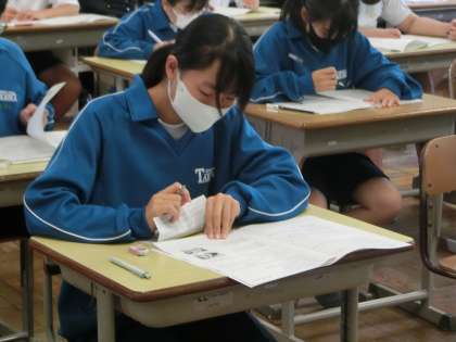 定期テスト・2日目、1年3組の様子です。