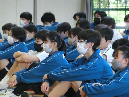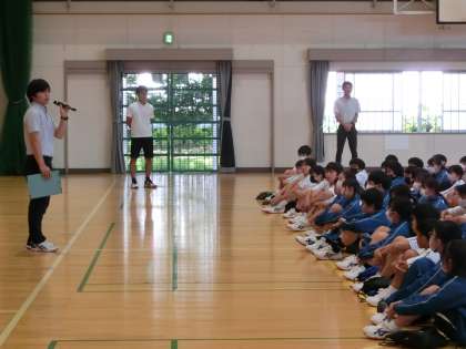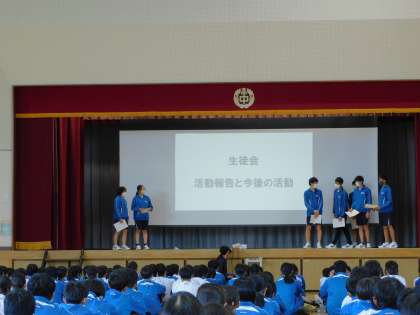 部活動の大会で優秀な成績を収めた生徒の表彰、生徒会の活動報告、生徒指導主事の話などがありました。