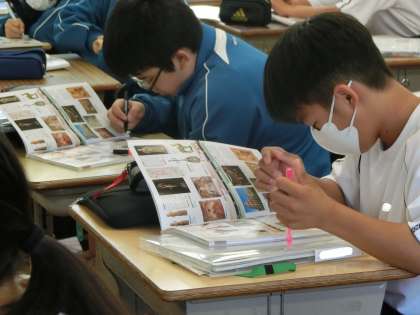 リニューアルされた美術室で、美術史や歴史的美術作品の特徴について学んでいました。