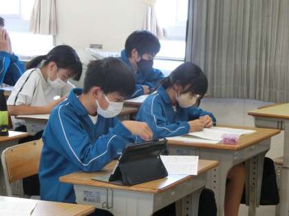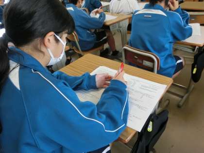 定期テストが返却され、正解だけでなく正しい解き方の再確認もしていました。