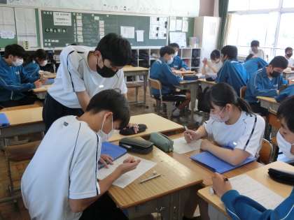 6/6 3-1 根号を含む式 3 公開日 2024/06/06 更新日 2024/06/06 各学年から 3年1組の数学の授業の様子です。 テストを終えたばかりですが、新しい内容(根号を含む式の乗法・除法)について学んでいました。