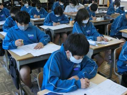 定期テストが返却され、間違えた問題を中心に各自で解き直しに取り組んでいました。