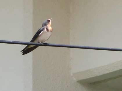 校舎周りでツバメが飛び交っている姿をよく見かけます。そんなツバメもたまには電線にとまってひと休み。校舎の方に顔を向け、生徒たちの様子を眺めているようにも見えます。