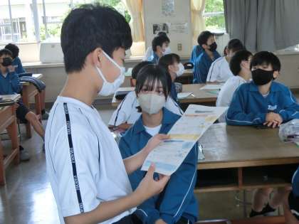 6/8 1-2 野原家の住まいを快適に… 3 公開日 2024/06/08 更新日 2024/06/08 各学年から 今週、紹介できなかった生徒の様子をお伝えします。 1年2組の家庭科の授業の様子です。 快適な住まいの学習で、「野原家 バージョンアップ大作戦」と題したジャンプ課題に取り組んでいました。
