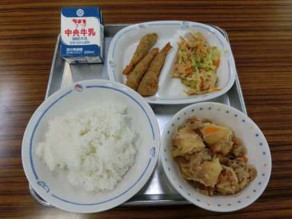 肉じゃが、めひかりフライ、おひたし、ごはん、牛乳 でした。