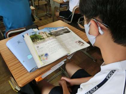 「A Mother's Lullaby」というタイトルの広島の原爆投下について記された物語を読み込んでいました。