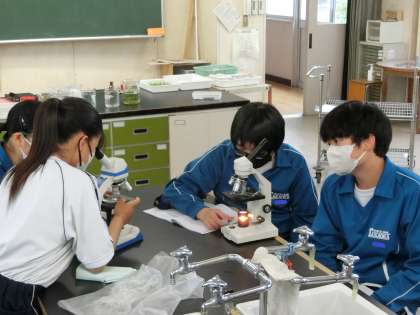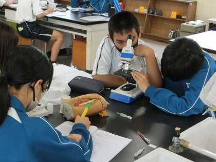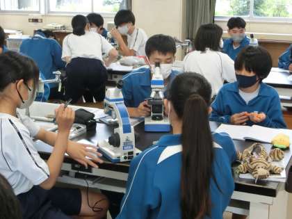 「高岡中の生物の観察」と題して、教科担任が集めてきたサンプルを顕微鏡で観察し、一生懸命スケッチしていました。