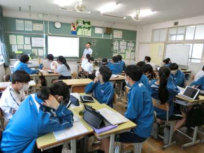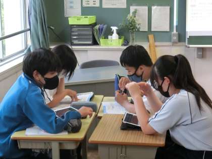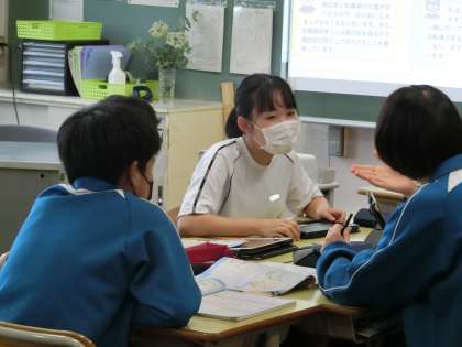「効率と公正を考えよう」をテーマに、日頃の出来事の中でどちらを優先するか、グループで各自の意見を伝え合っていました。