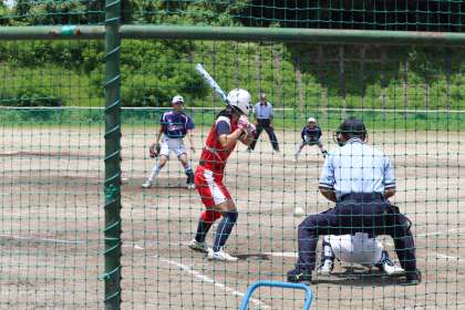 写真は、豊田市運動公園多目的広場で行われたソフトボール部の大会の様子です。