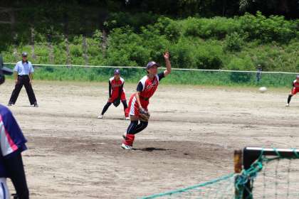 写真は、豊田市運動公園多目的広場で行われたソフトボール部の大会の様子です。