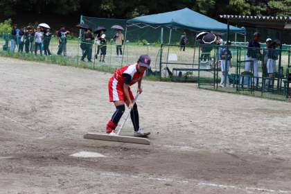 写真は、豊田市運動公園多目的広場で行われたソフトボール部の大会の様子です。