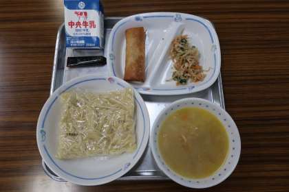 7/12 今日の給食 公開日 2024/07/12 更新日 2024/07/12 特別活動 今日の献立は ————— とんこつラーメン(中華めん)、春巻き、ナムル、牛乳、コーヒー牛乳の素 でした。 *エネルギー:787kcal たんぱく質:32.6g