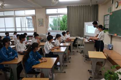 朝の活動時、3年生が2年生の教室を訪れ、「修学旅行・企業訪問発表会」を行いました。問題意識や目的をもって企業を訪問することで、たくさんの気づきや学びがあることが伝えられていました。また、その後の生活や将来の自分にとって大変有効な機会であることも伝えられていました。