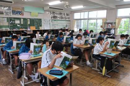 7/17 1-1 英語で話そう 2 公開日 2024/07/18 更新日 2024/07/18 各学年から 1年1組の英語の授業の様子です。 「何が好きかたずねたり答えたりしよう」をテーマに、たくさんのパターンの英文を音読していました。