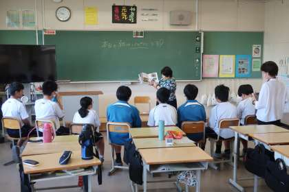 ハピクロ(読み聞かせボランティア)のみなさんに、各クラスで読み聞かせをしていただきました。
