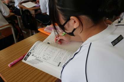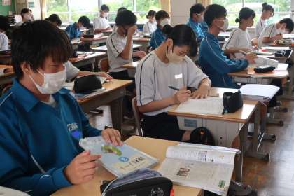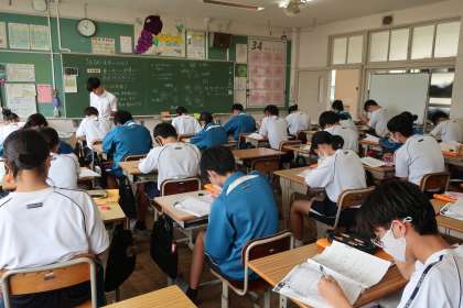 「孫の代への形質の伝わり方を考えよう」をテーマに、遺伝の学習に取り組んでいました。