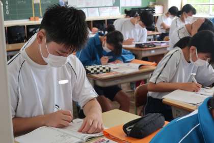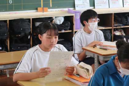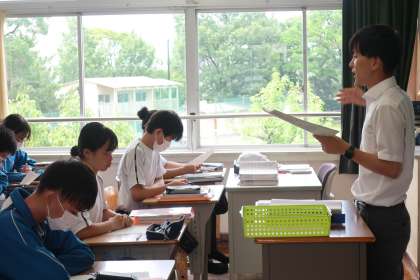 「孫の代への形質の伝わり方を考えよう」をテーマに、遺伝の学習に取り組んでいました。