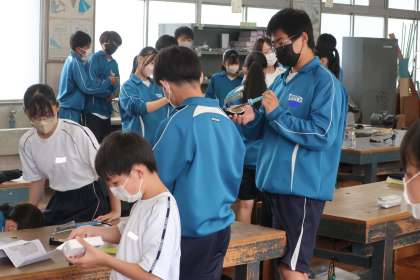 7/19 2-3 エネルギー変換の実験準備 3 公開日 2024/07/19 更新日 2024/07/19 各学年から 2年3組の技術科の授業の様子です。 ハンディタイプのスポットライトづくりの前に、これまで学習してきたエネルギー変換の実験のための装置を作っていました。