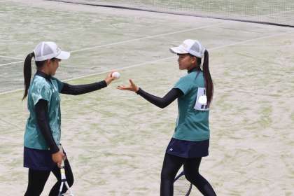 2回戦で一度は負けてしまったものの、敗者復活戦で激戦を制し、見事、県大会出場を決めました。猛烈な暑さの中、頑張り抜いた2年生ペアに感動しました。