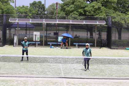 2回戦で一度は負けてしまったものの、敗者復活戦で激戦を制し、見事、県大会出場を決めました。猛烈な暑さの中、頑張り抜いた2年生ペアに感動しました。