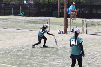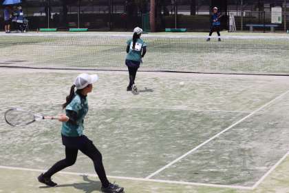 2回戦で一度は負けてしまったものの、敗者復活戦で激戦を制し、見事、県大会出場を決めました。猛烈な暑さの中、頑張り抜いた2年生ペアに感動しました。