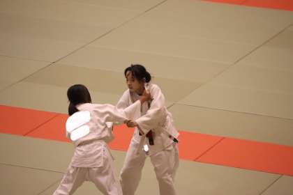 写真は、岡崎中央総合公園武道場で行われた柔道部・個人戦の大会の様子です。