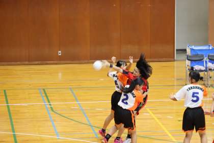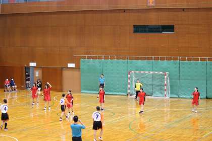 写真は、スギ薬局知立福祉アリーナで行われた女子ハンドボール部の大会の様子です。