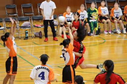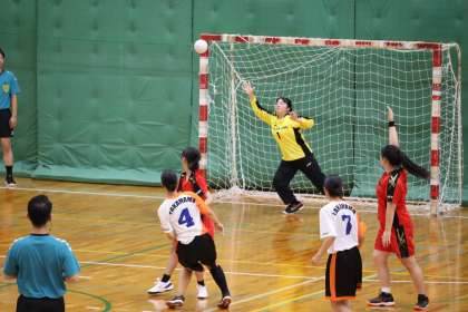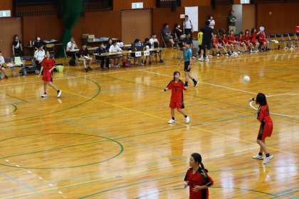 写真は、スギ薬局知立福祉アリーナで行われた女子ハンドボール部の大会の様子です。