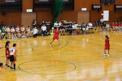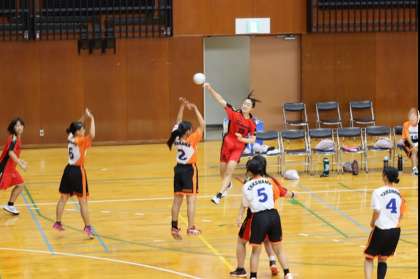 写真は、スギ薬局知立福祉アリーナで行われた女子ハンドボール部の大会の様子です。
