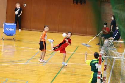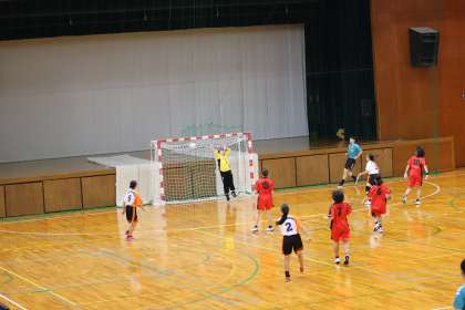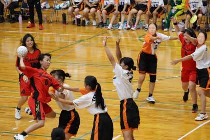 写真は、スギ薬局知立福祉アリーナで行われた女子ハンドボール部の大会の様子です。