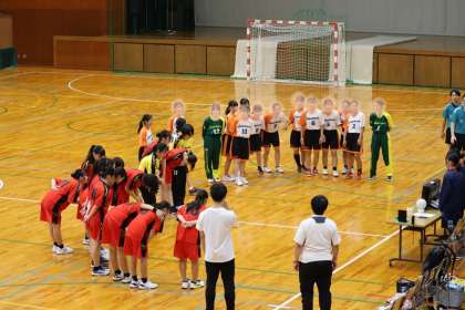 写真は、スギ薬局知立福祉アリーナで行われた女子ハンドボール部の大会の様子です。