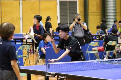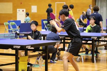写真は、碧南臨海公園体育館で行われた卓球部・個人戦の大会の様子です。