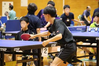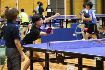 写真は、碧南臨海公園体育館で行われた卓球部・個人戦の大会の様子です。