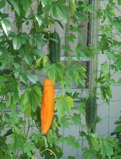1年生が技術科の授業で取り組んでいるグリーンカーテン。夏休みに入り、大きく実った成果物が目に留まるようになりました。部活動などで登校した際、ぜひ自分たちのグループが植えた植物の様子を見てほしいと思います。