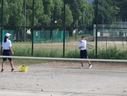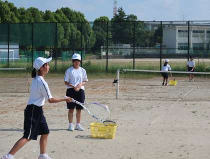 ソフトテニス部の活動の様子です。 週末の実施で、地域指導者の方から熱心な指導をいただきました。