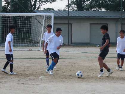 地域指導者考案の練習メニューに集中して取り組みつつ、積極的に声をかけ、元気いっぱい活動していました。