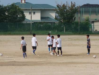 地域指導者考案の練習メニューに集中して取り組みつつ、積極的に声をかけ、元気いっぱい活動していました。